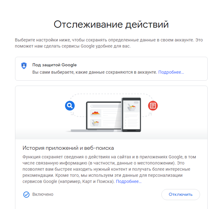 Пользователи отдают Google огромное количество информации о себе: местоположение, голосовые запросы, историю поиска. Нужно это, чтобы на основе предпочтений, вкусов и особенностей поведения улучшить сервисы техногиганта и показывать наиболее релевантную рекламу. Согласны с политикой сбора личных данных далеко не все.